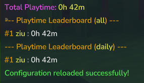 playtime.check,playtime.adminи т.д.) дает владельцам серверов полный контроль. - Live Tracking: Топ-10 списков и личных статистических данных обновляются мгновенно, даже во время игры.