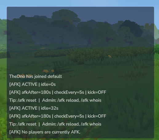 config.jsonin the plugin data folder - Reload the plugin with: /afk reload