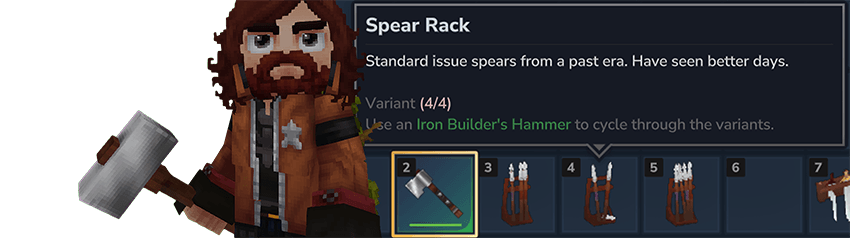 ⚜️ 3D model and color variations on most* furniture when using the Builder's Hammer.