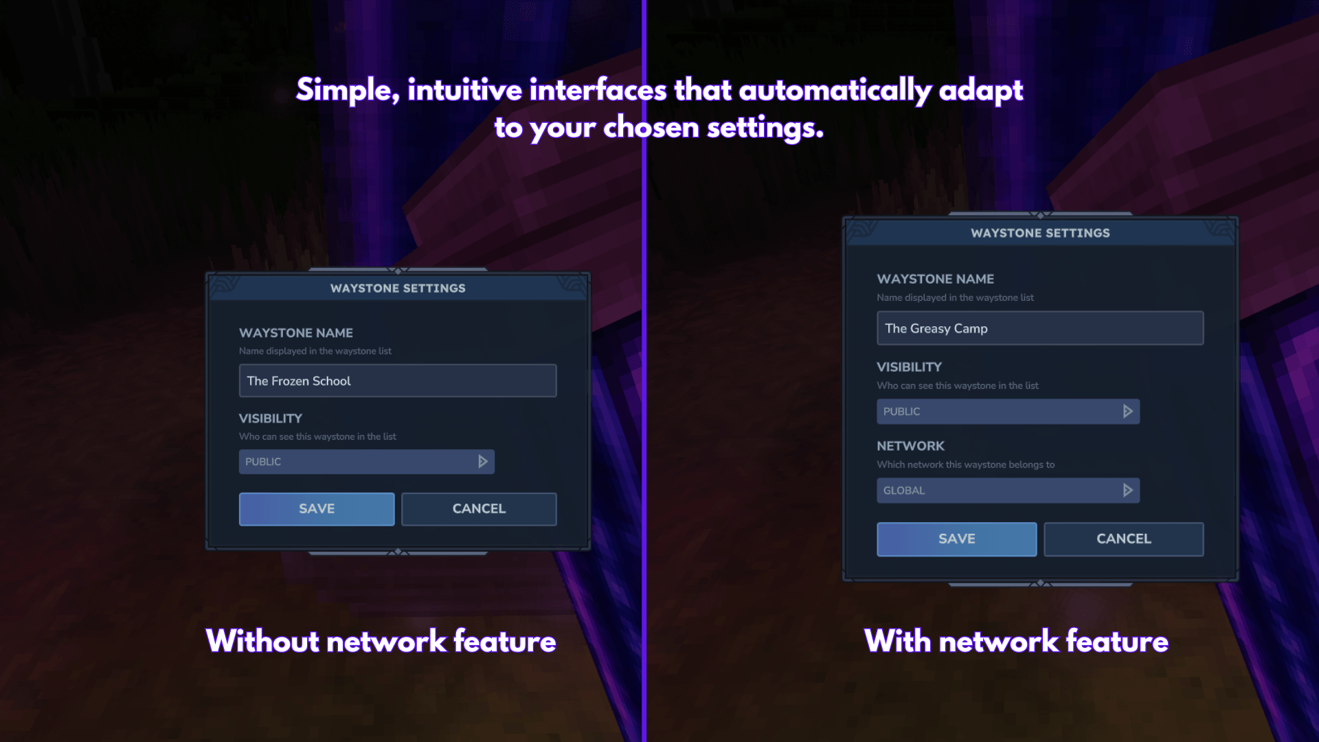 Примечание: Сети по умолчанию отключены. Все Waystones имеют общую глобальную сеть.
