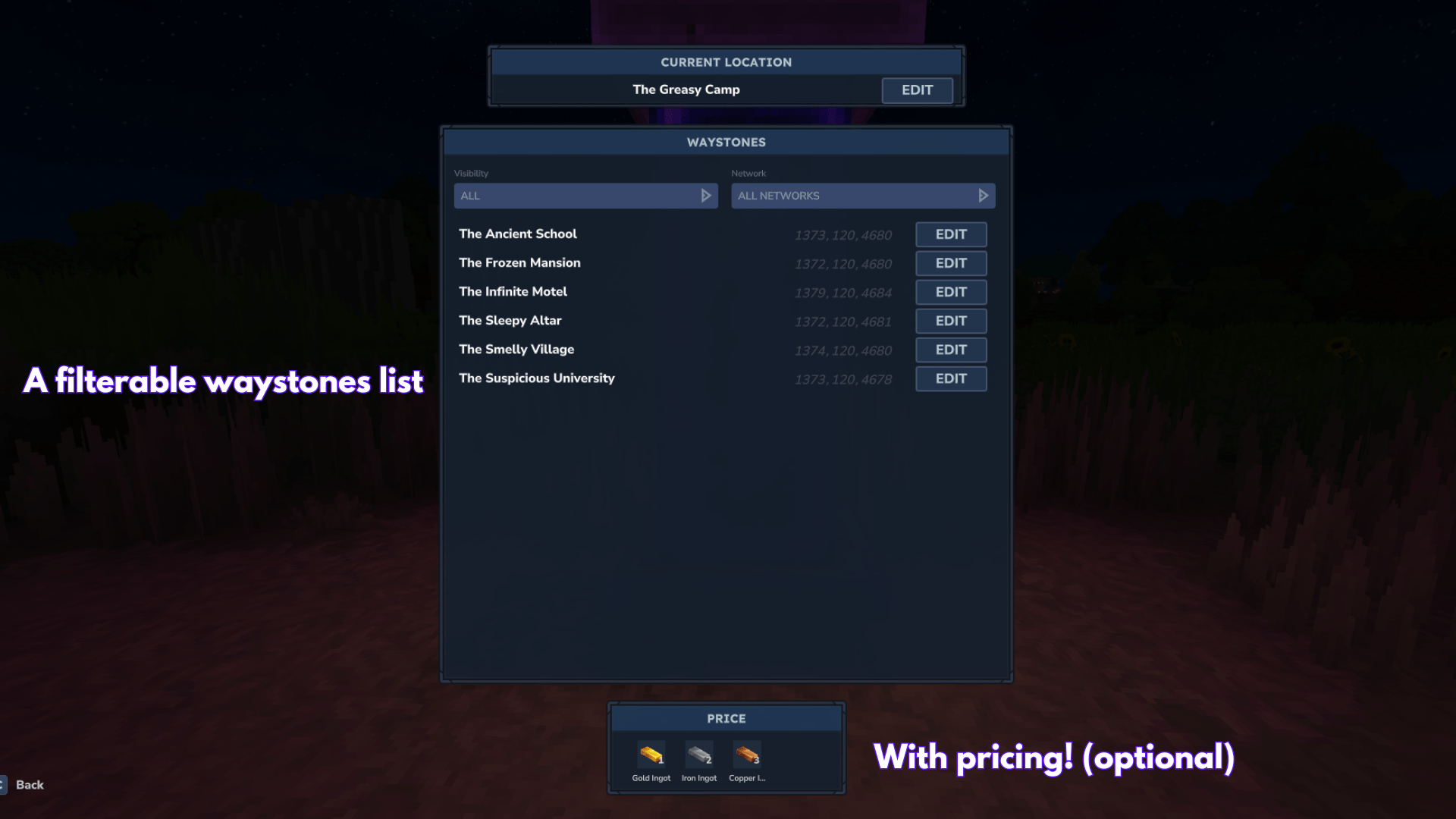 Waystone + Warpberry consumable. Built with the community. NEW: Map markers!