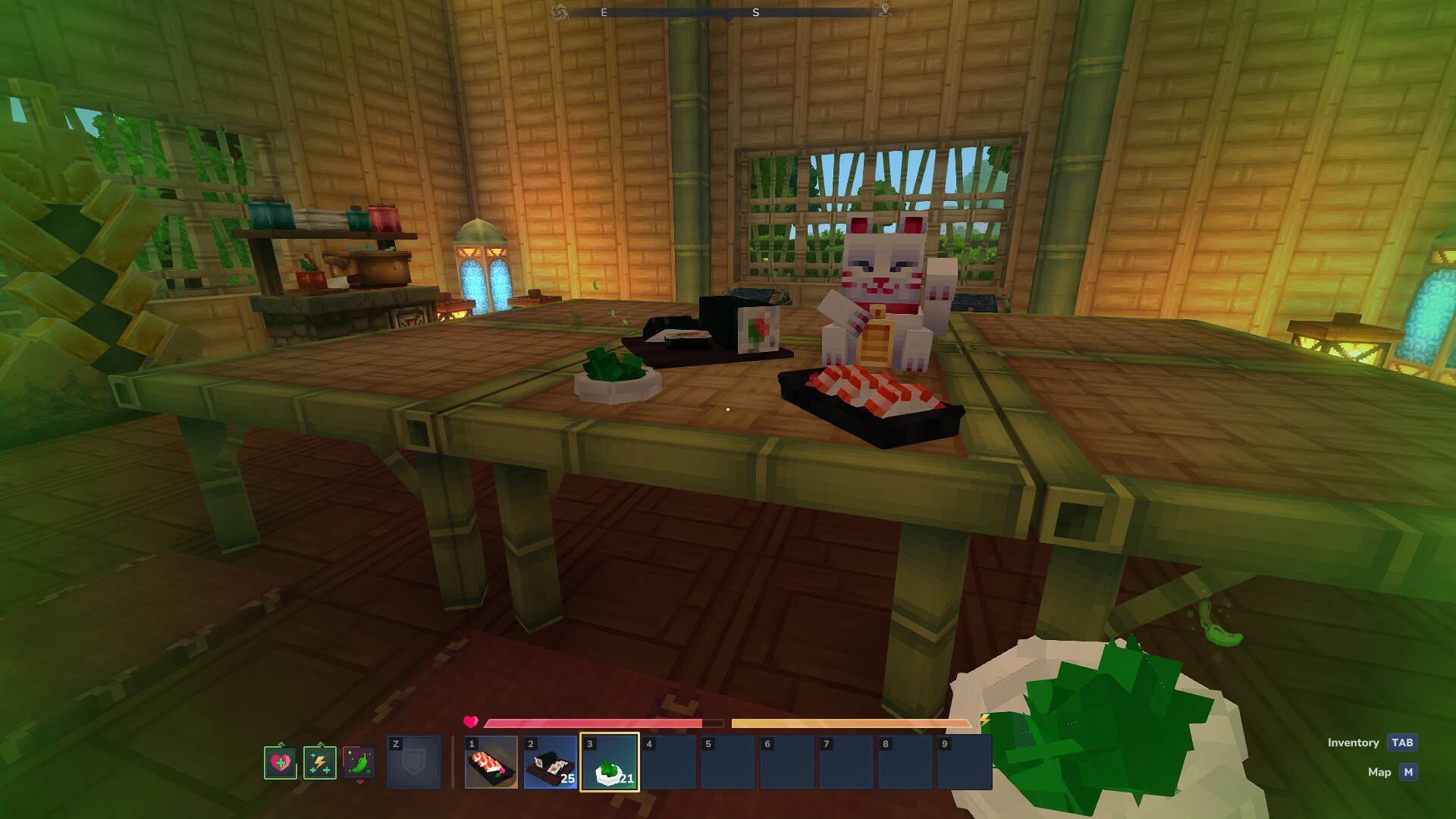 ⚡ Nutrición Estratégica: Obtén beneficios vitales como Estamina y Regeneración. Platos como el rediseñado Onigiri o el Rollo California recompensan el esfuerzo que pones en cultivar y cocinar.