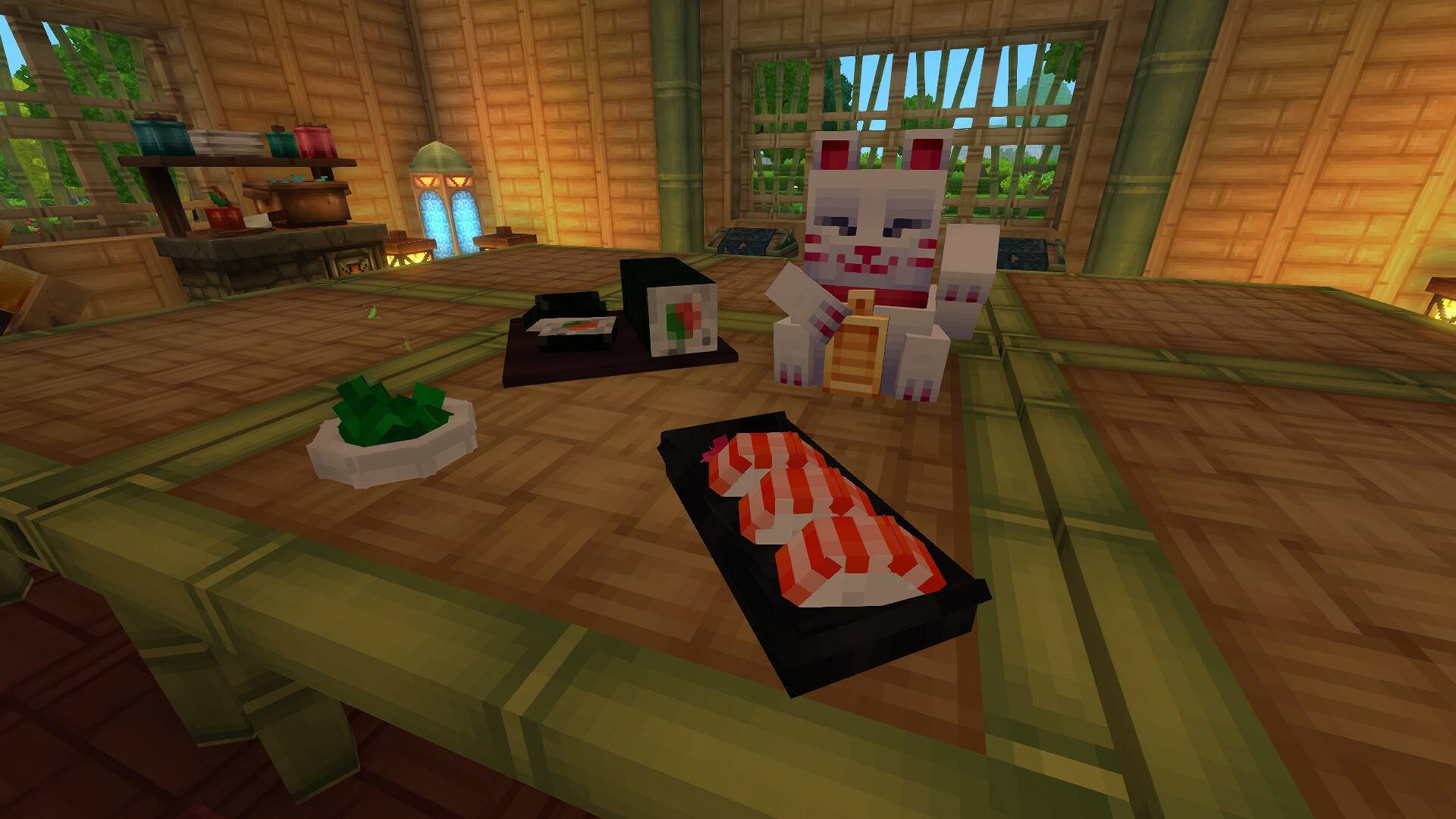 🥢 Immersive Dining: It’s not just food; it’s decor. From the new Soy Sauce Bottles to the traditional Shoyu-zara dips, every item is fully placeable. Set the table, decorate your shelves, and bring your dining hall to life (Crouch to place).