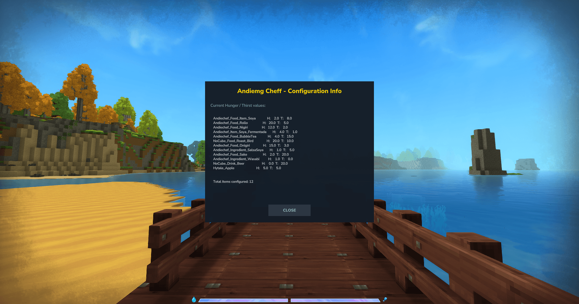 Aunque está altamente recomendado y pre-calibrado para el increíble mod Andiemg Cheff, la nueva actualización v1.0.5 te permite vincular comida de CUALQUIER otro mod a las mecánicas de sed y hambre de EasyHunger.