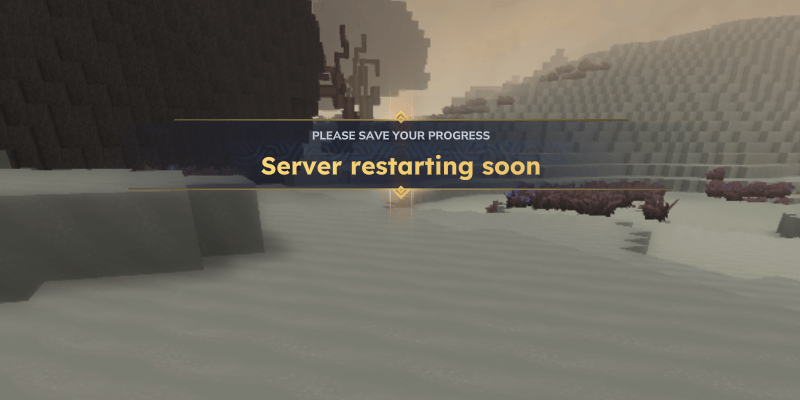 /an "Server rearting soon" -подзаголовок = "Пожалуйста, сохраните свой прогресс"