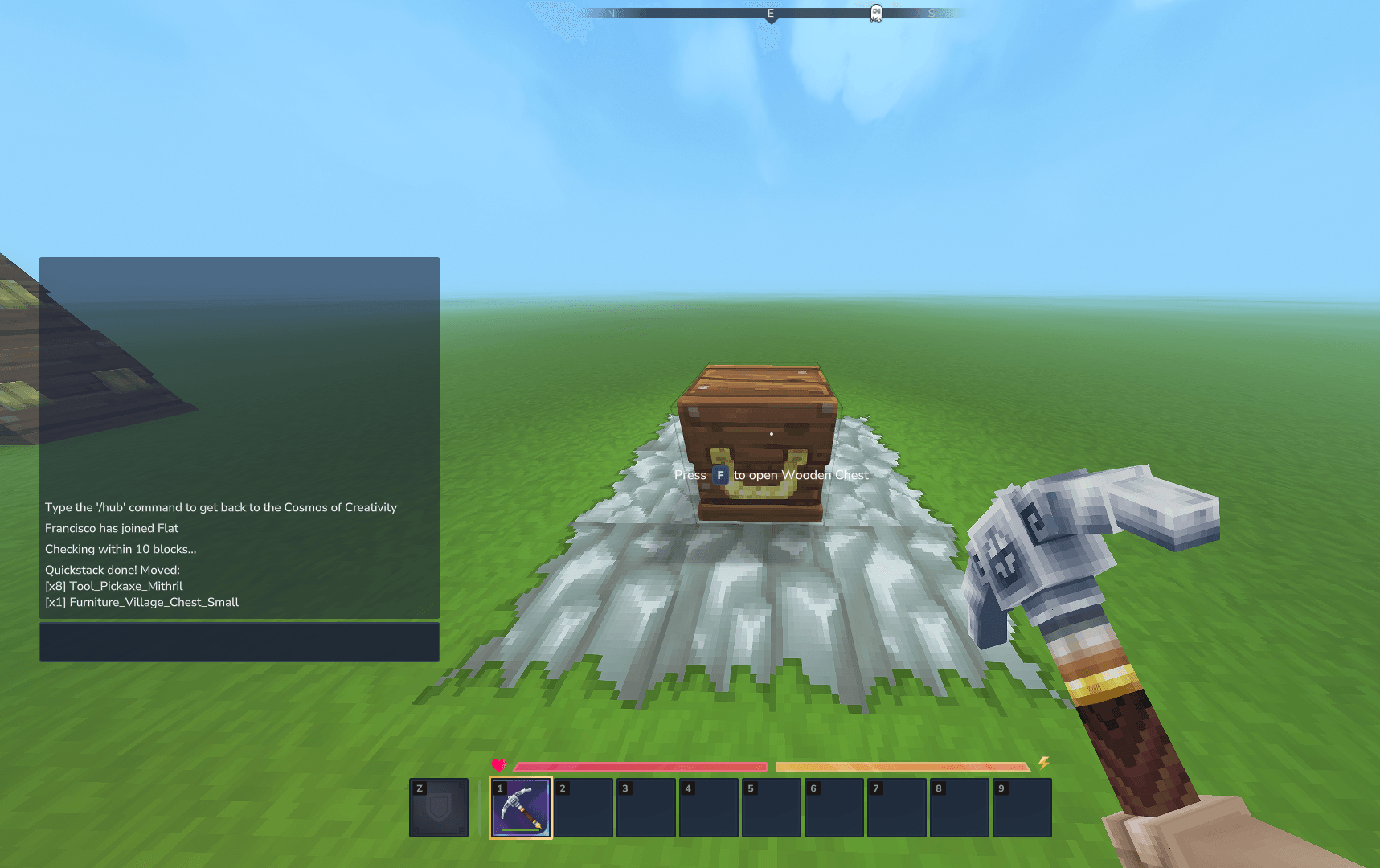 A command that quickly stacks items into nearby chests and fills processing benches.