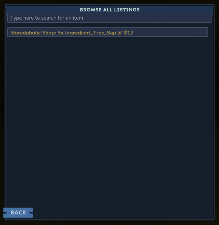 Features search function for both player shop searches as well as item searches in browse all.