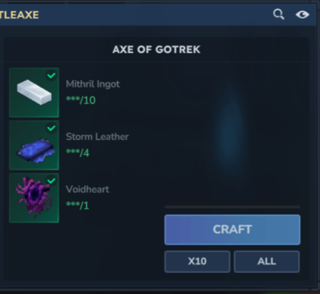 Рецепт крафта такой же, как и боевой топор Mythril