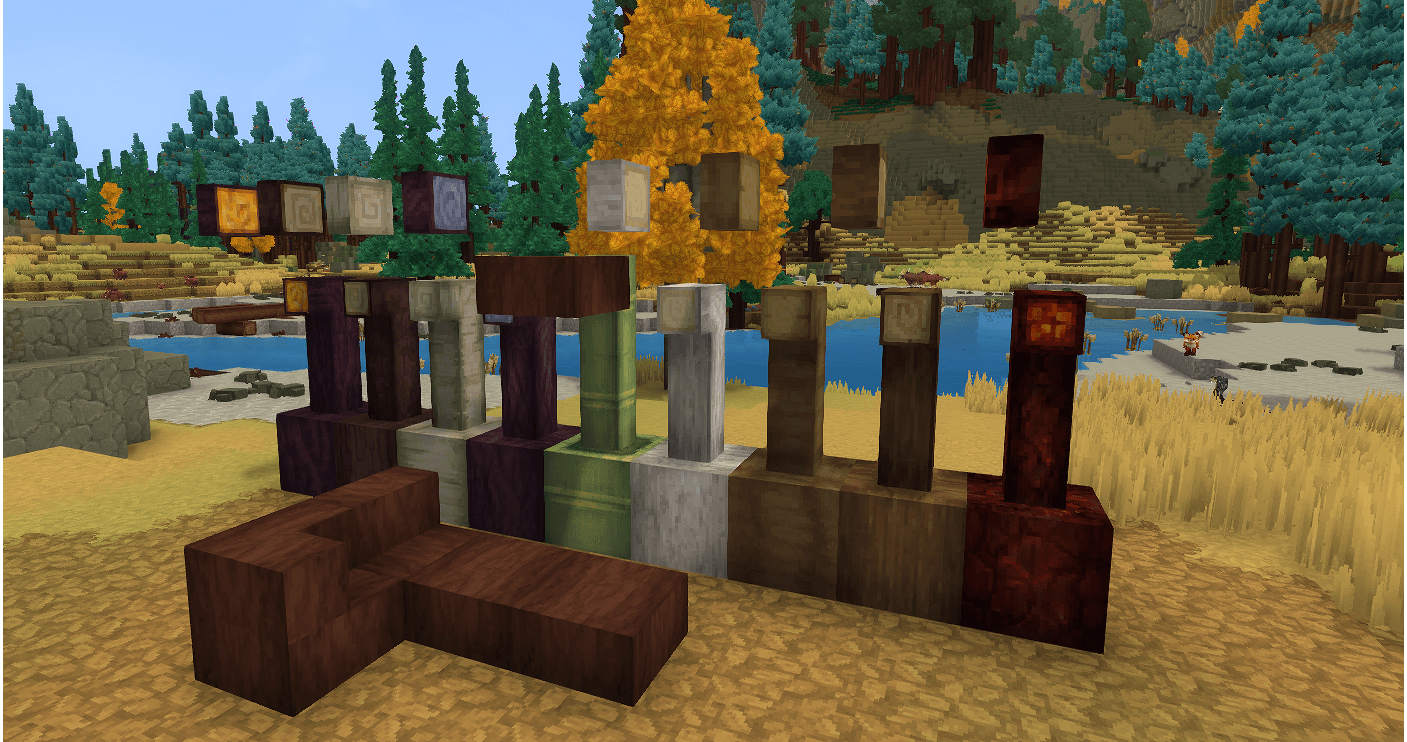 Это позволяет игроку создавать окруженные корой вариации бревен, ветвей и корней.