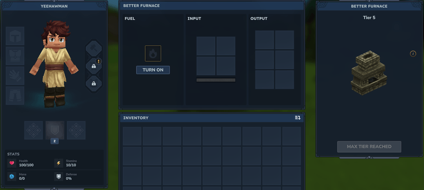 A simple Hytale mod replacing the Vanilla Furnace with a Better Version. 5 Tiers, more slots, faster smelt time!