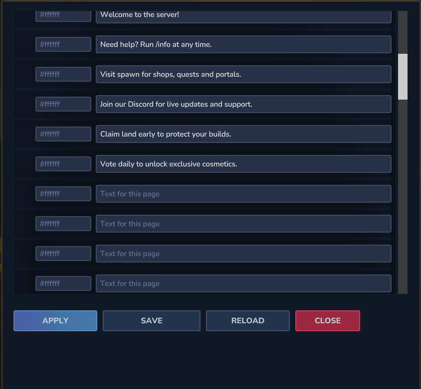 Perfect for servers that want clear communication, organized info pages, and easy in-game management.