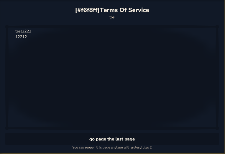 A lightweight and flexible global rules manager that lets you create, organize, and display your server rules directly in-game — no config files, no restarts.