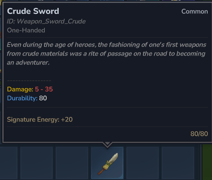 - Shows Stats: Displays the damage range and maximum durability in the item description.