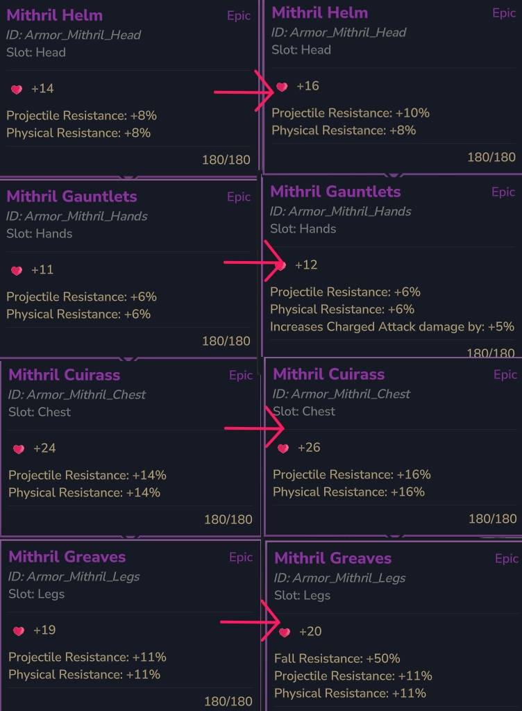 Mithril armor now provides a more tanky but less damage based build and mithril tools mine faster while also having a higher durabilty.