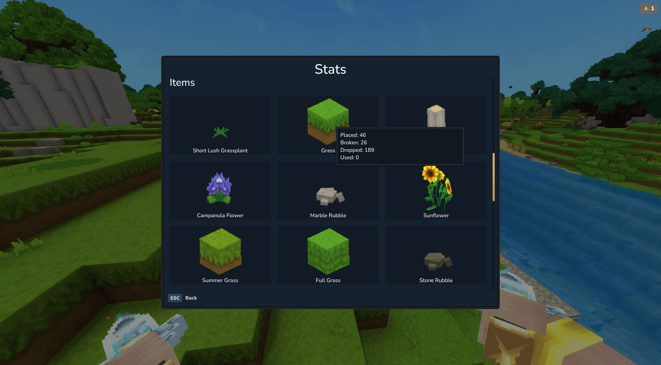 - Block stats (placed, mined, used, dropped)