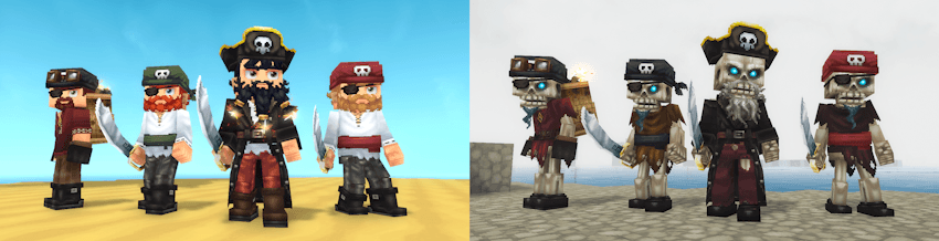 Пираты Blook В игре представлены пиратские враги, как человеческие, так и скелетные. Их можно встретить в биоме Шорса зон 2 и 3 соответственно. Их трудности масштабируются до соответствующих зон.