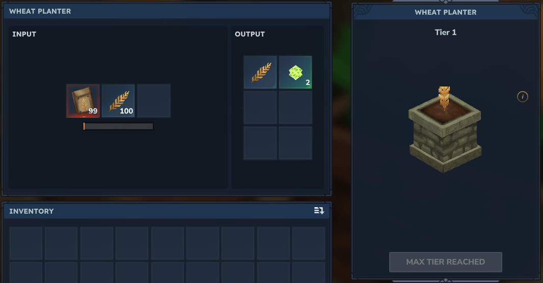 Planters consume the seed packs for a single produce. Produce itself will grow into double. (Currently set this way because of json limitations). I had hoped to make it as close to the original as possible by having the seed sit in the input slot and not be consumed but the minimum is 1 sadly. Hopefully we can expand into the Java side and build actual GUI and animations for the growing process like the original Botany Pot.