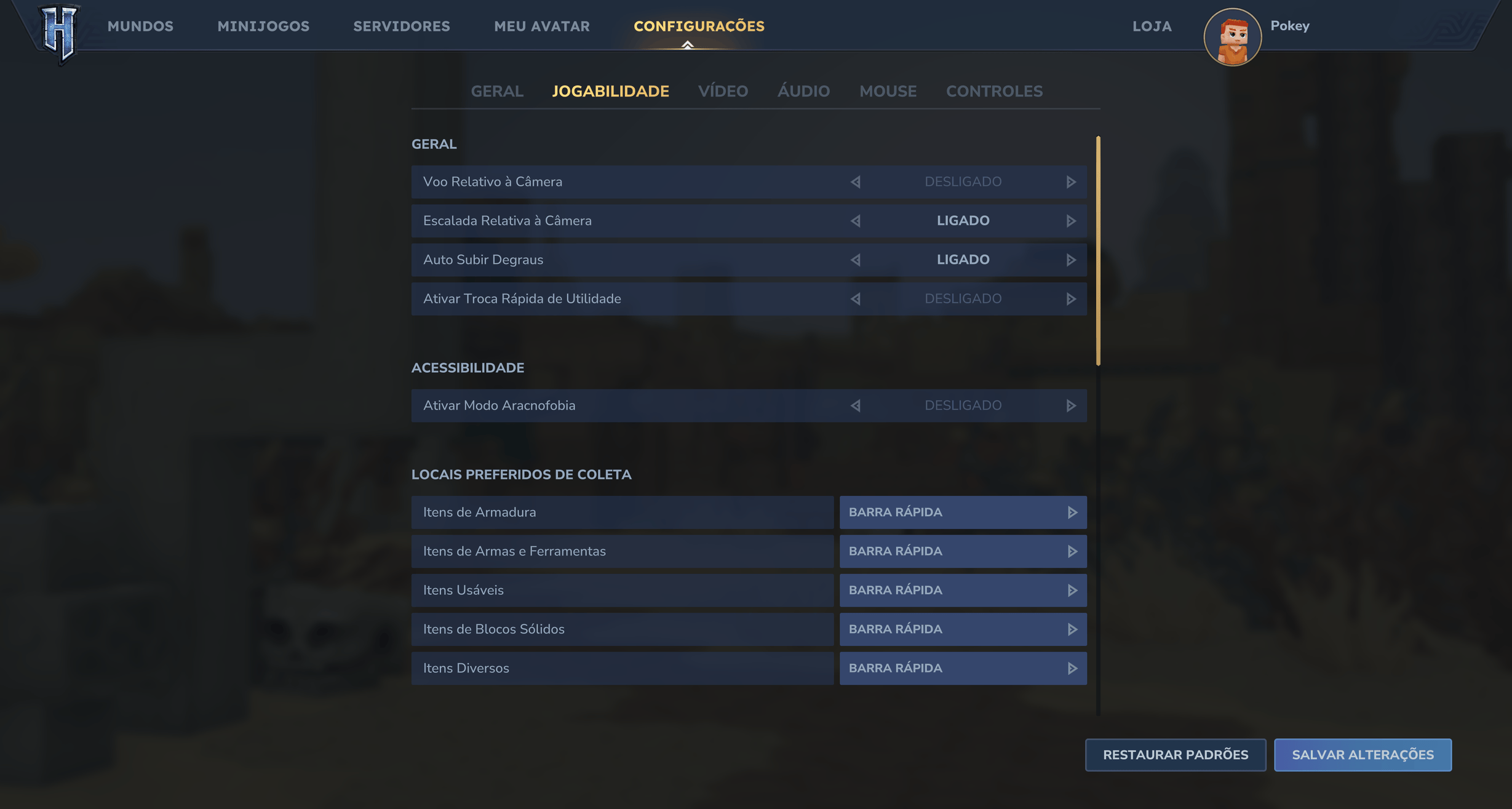 - Todas as Configurações - Vídeo, Áudio, Controles, Jogabilidade