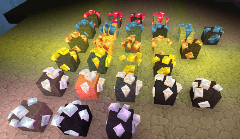 2. Better Ore Visibility – Most ores emit light in game so you can more easily see them in caves.