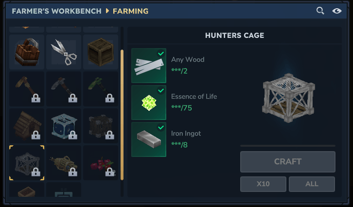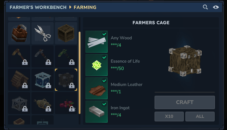 Farmer's Cage - (доступно на Tier 2 в Farmer's Workbench) - Взрослые версии скота, а также хищных животных.