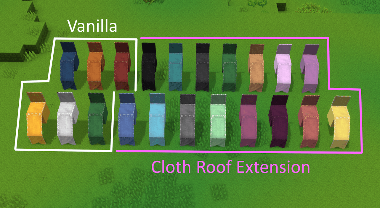 Hytale has 21 cloth colours but only 6 of them can be crafted into rooves. This mod adds rooves for the remaining 15.