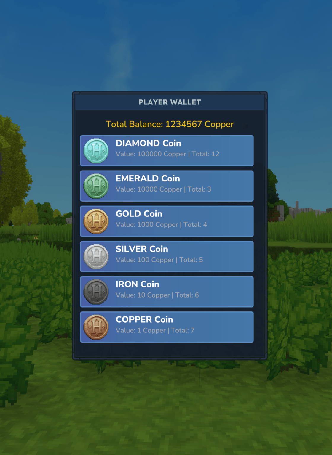 Принесите надежную физическую и цифровую экономику на ваш сервер Hytale! Монеты Hytale Он легко интегрирует физические валютные предметы с современной системой цифрового кошелька, позволяя игрокам легко торговать, платить и управлять своим богатством.