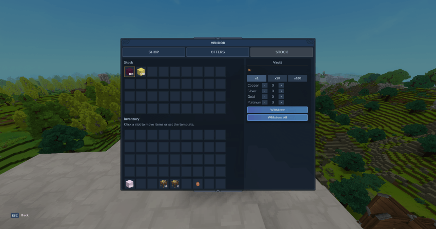 - Продажи идут в безопасное Заработок Vault _(сохраняется как "медная стоимость")