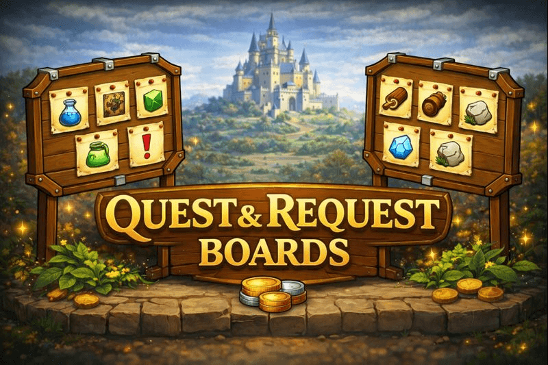 - Quest & Request Boards: Create quests and requests to ask for materials in exchange of coins