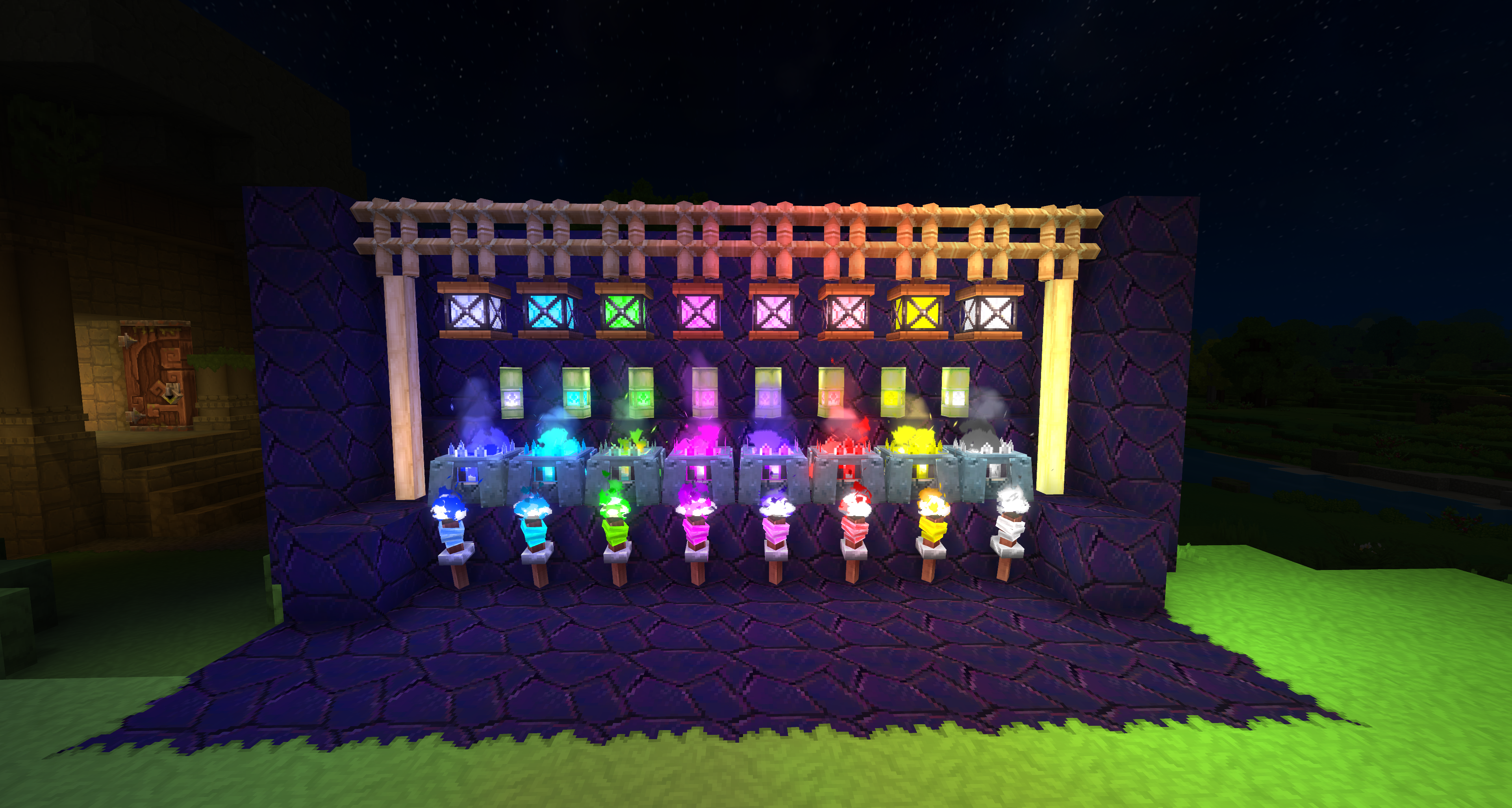 Этот мод добавляет Цветные варианты несколько источников ванильного света, что позволяет добавить атмосферу и стиль в ваши конструкции.