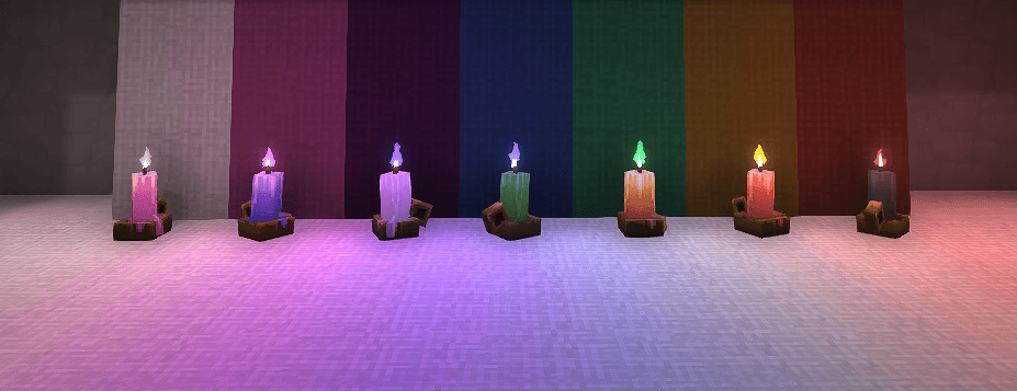 Have you ever looked at the candles and wished for more color? Add a splash of color to your world! This mod adds the ability to craft candles into many colors.
