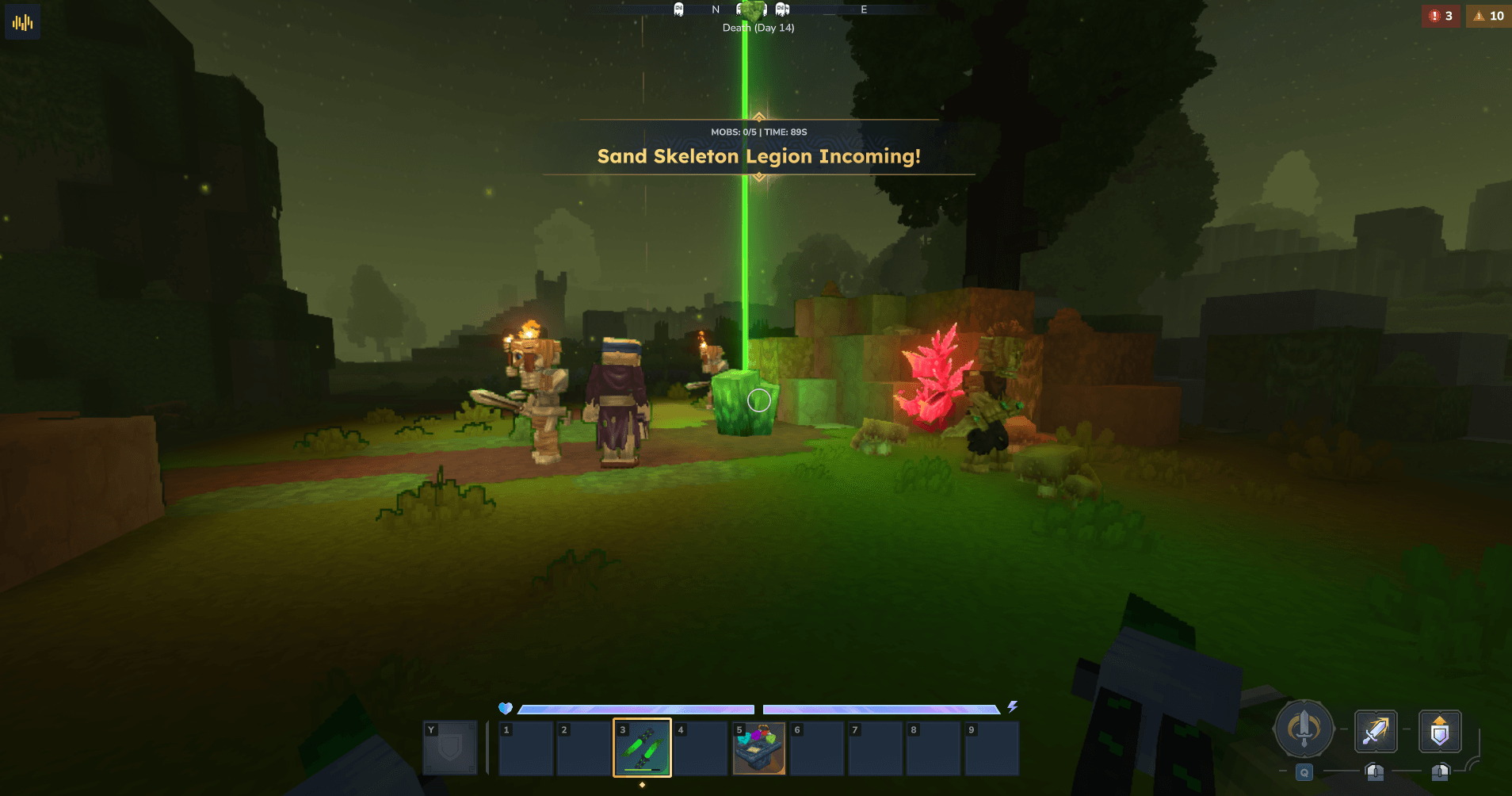 Falling comets crash into your world with waves of enemies to fight - break the comet stone, survive the raid, claim the loot.