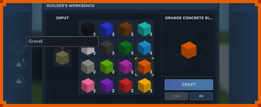 To ремесленник, использовать СтроительЭто Рабочий стол. Место Гравий в тот Ввод то получать цветной блок из бетон.