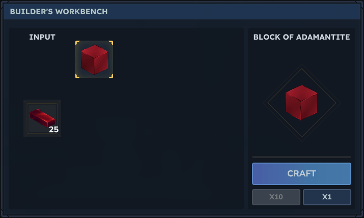 - x25 Adamantite Ingot -> x1 Block of Adamantite