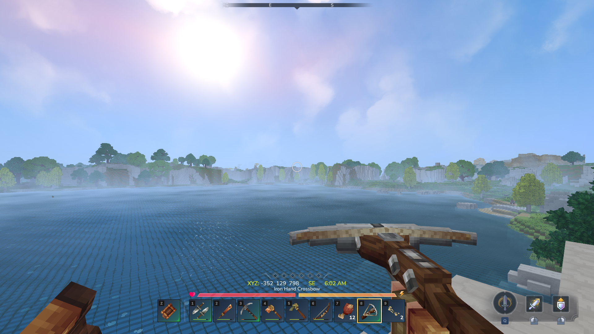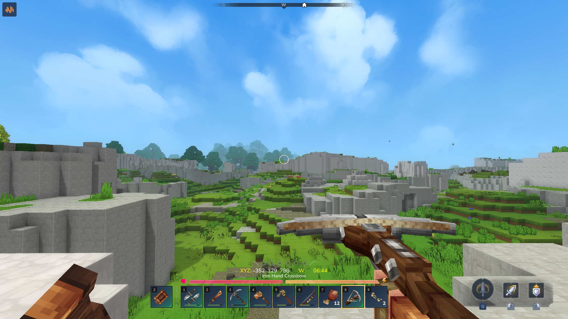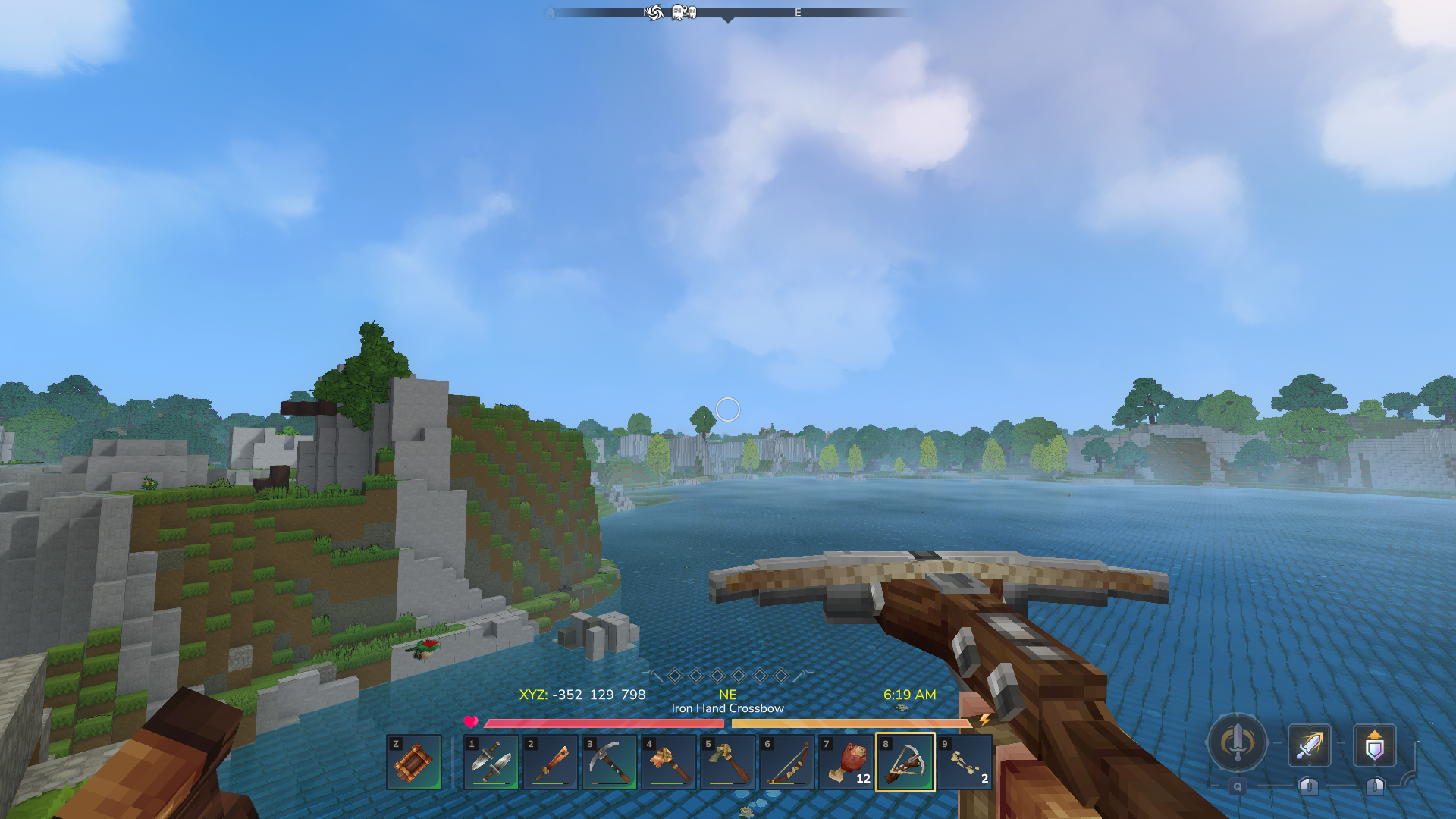 Display Coodrinates, Compass and Clock above hotbar