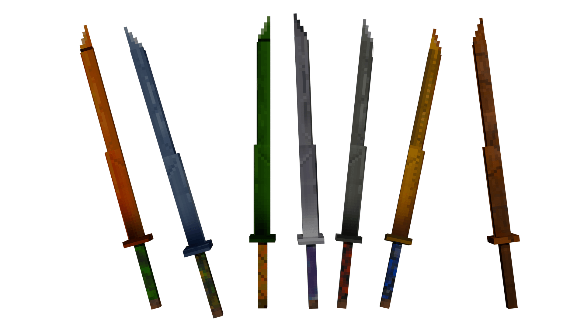 The mod currently includes 7 katana tiers, balanced to follow vanilla material strength: