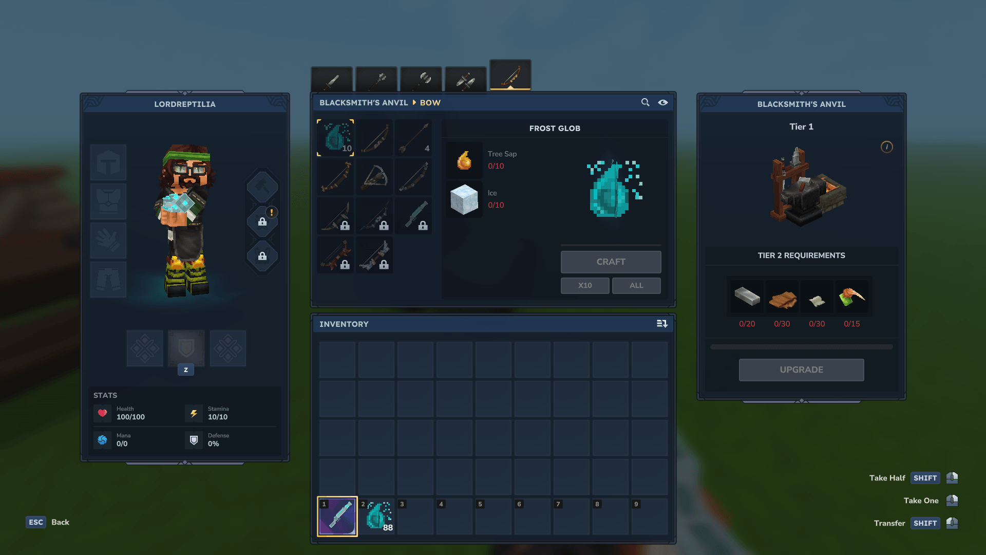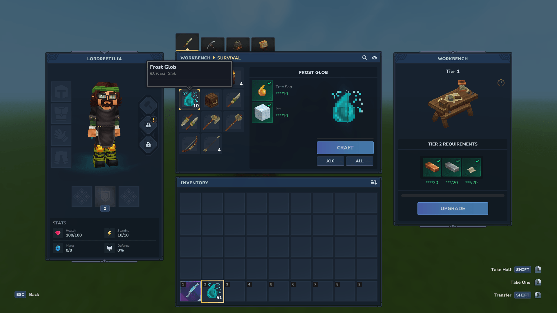 In order to craft this dangerously cold glob of Frozen energy, you'll need to combine the following ingredients at either a standard Workbench or a Blacksmith's Anvil: