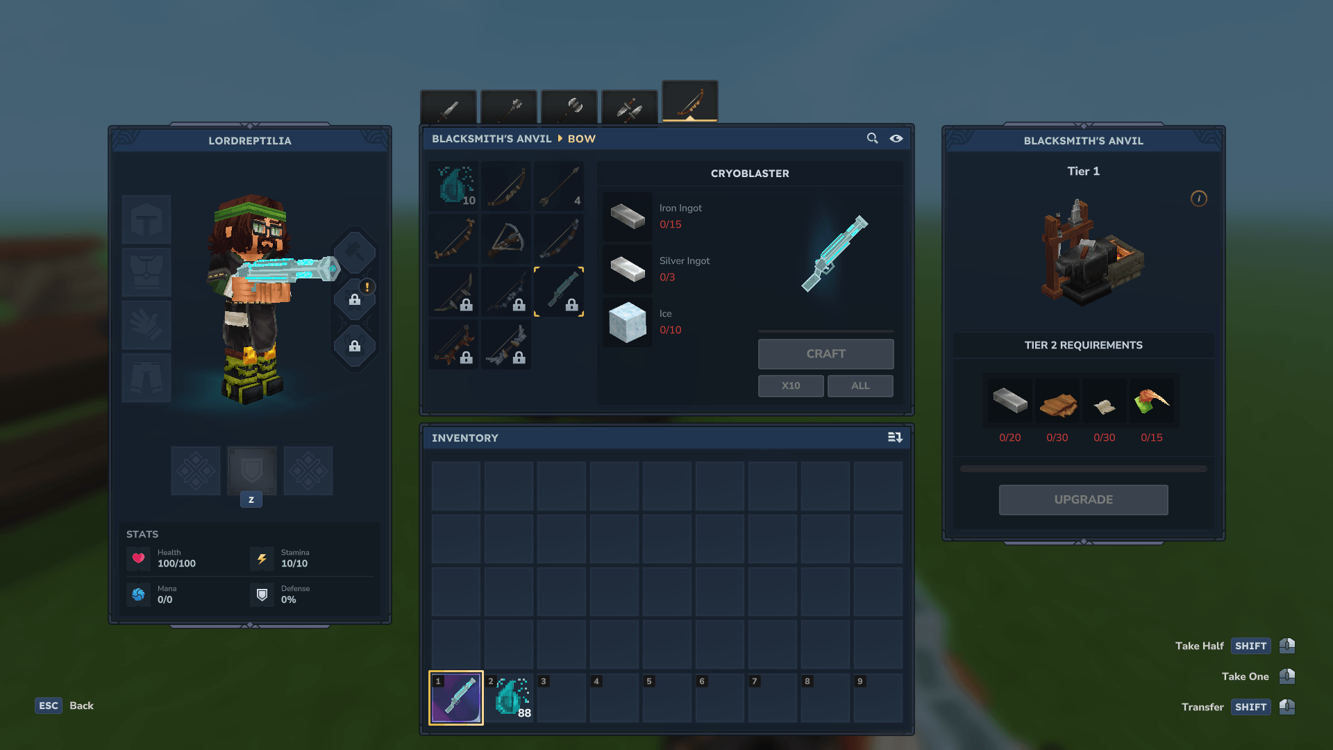 The Cryoblaster must be crafted at a Tier 2 Blacksmith's Anvil and with the following ingredients: