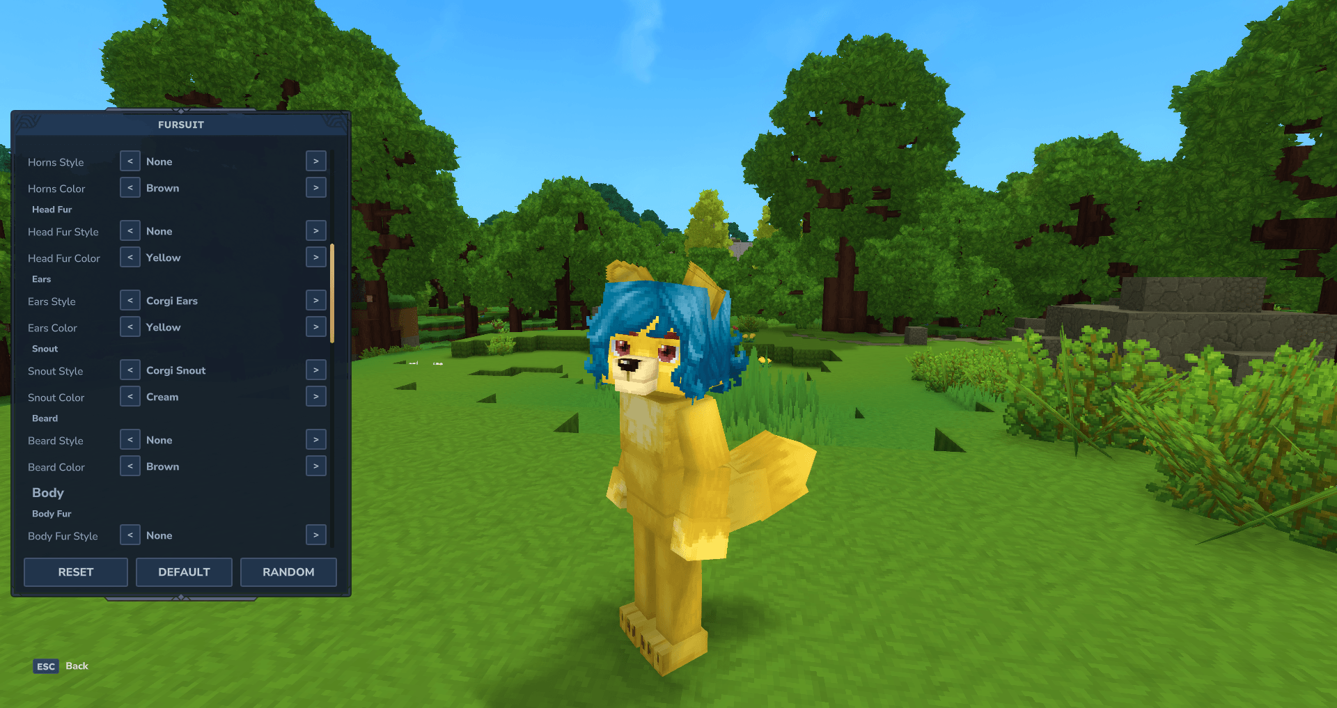 - RESET — turn off the fursuit and return to your normal player model.