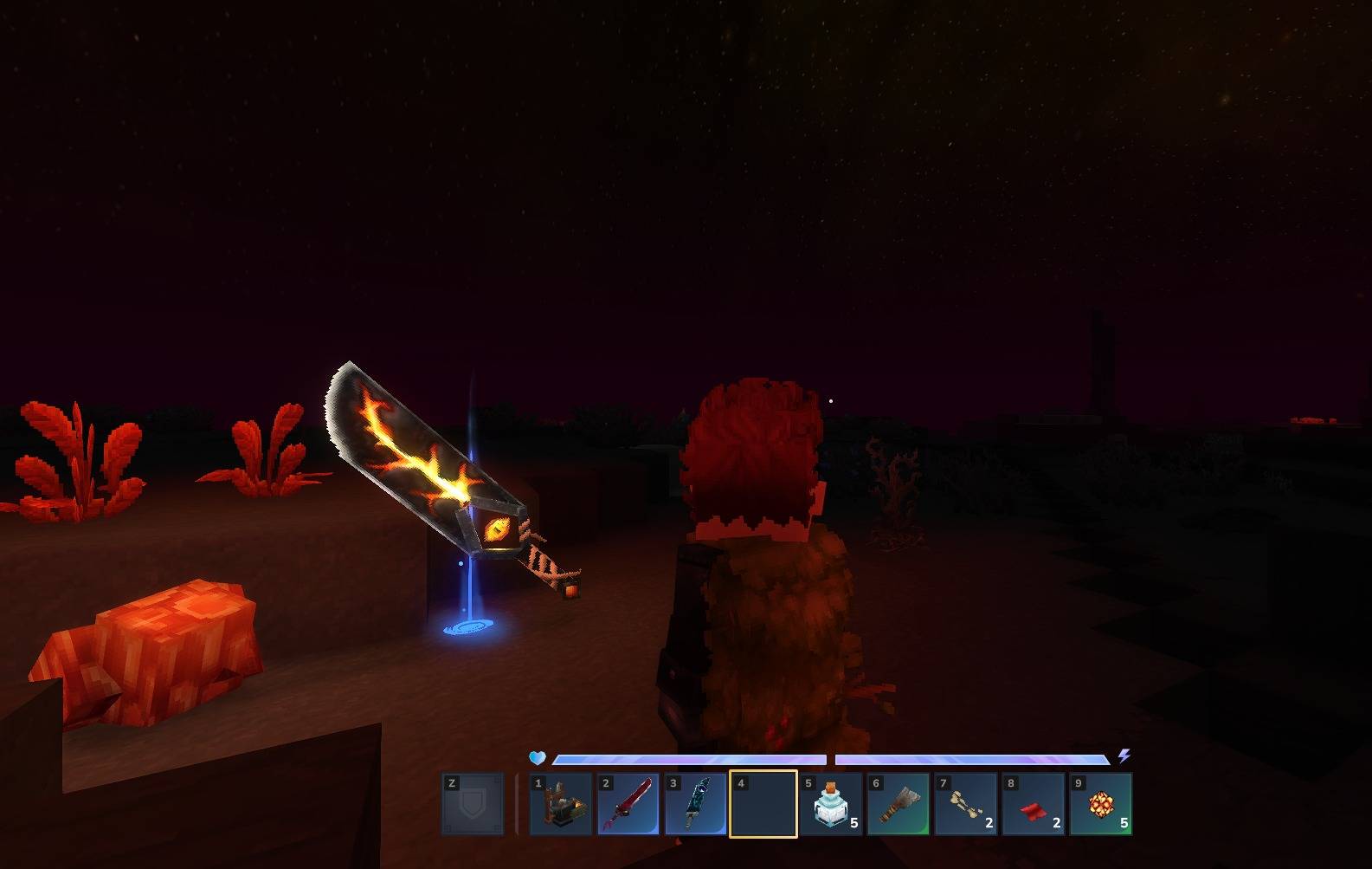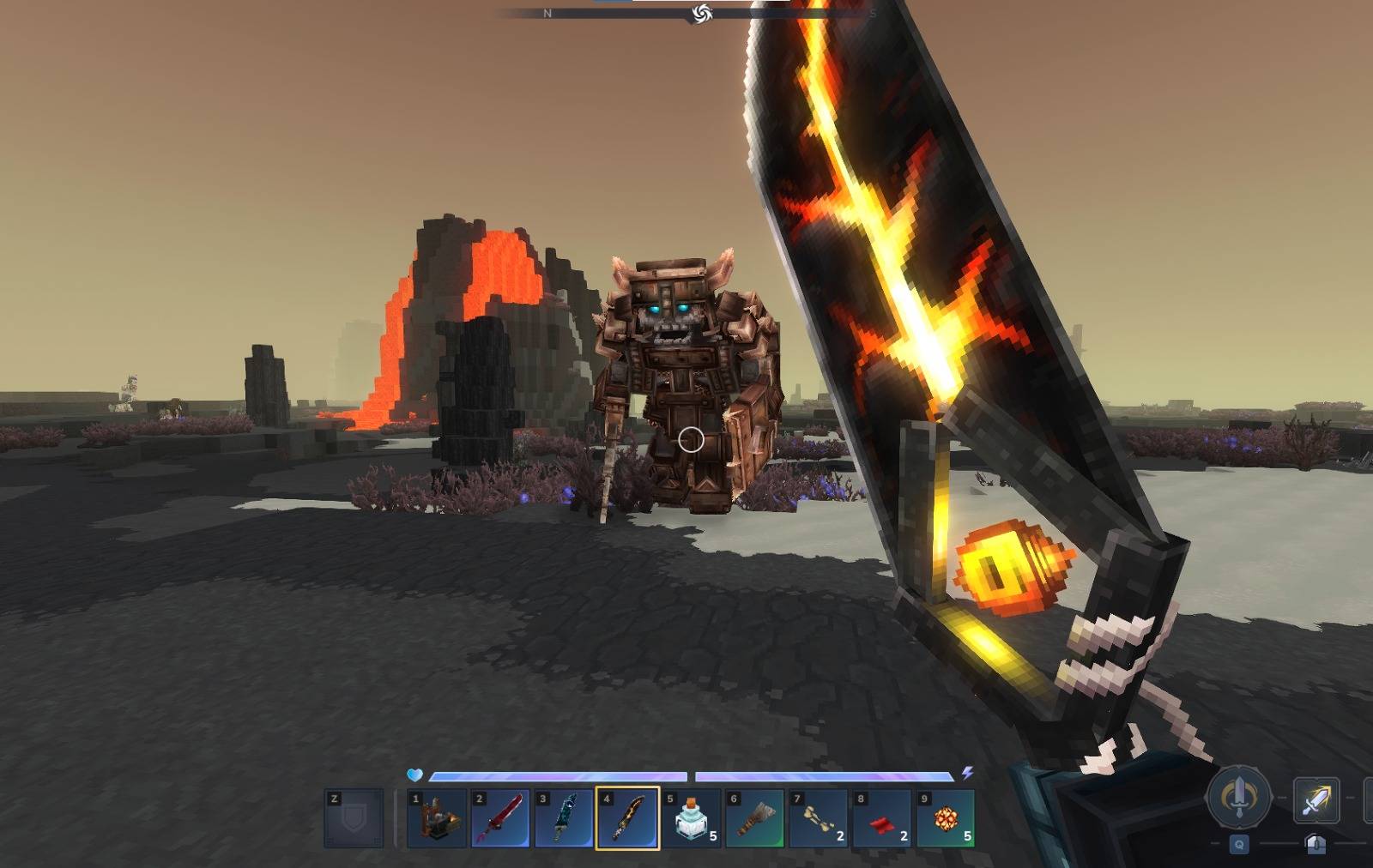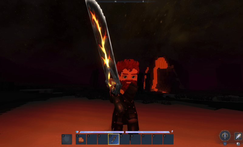 Дракон темнеет меч, обнаруженный из лавы глубоко внутри биома 4, ждет носителя, способного нести его и выдерживать его интенсивное тепло.