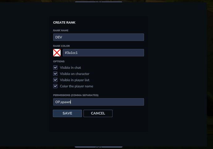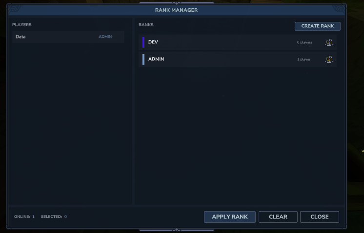 - Create, edit, and delete ranks directly in-game