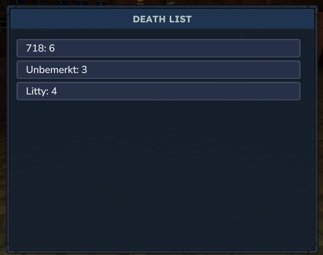 - /deaths - opens the Deathlist (required permission: deathcount.list)