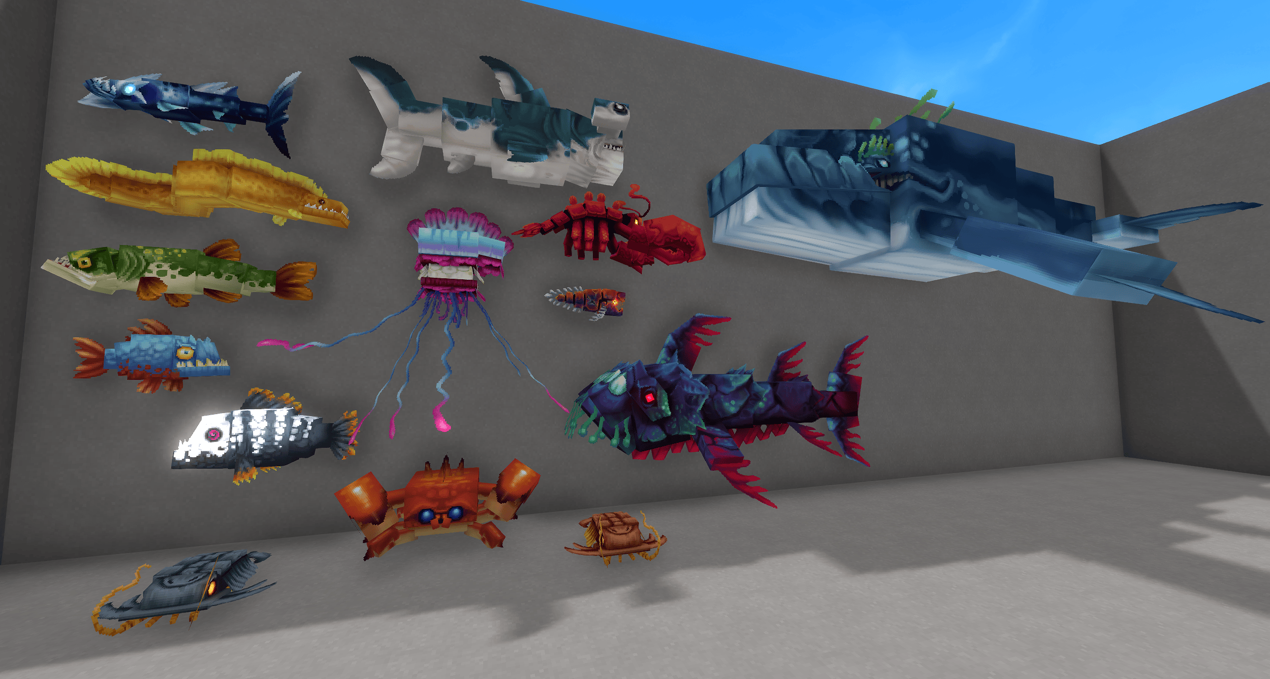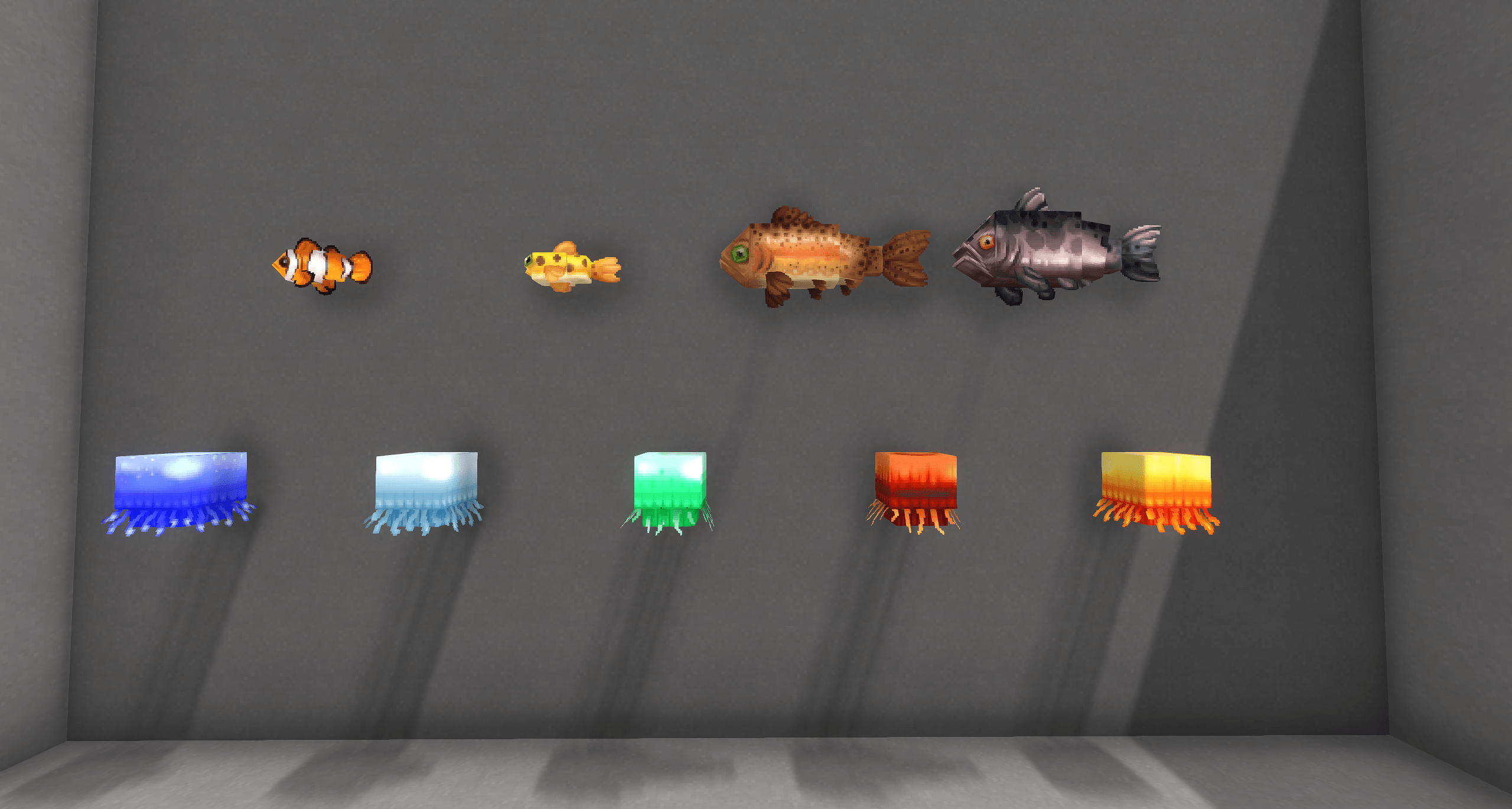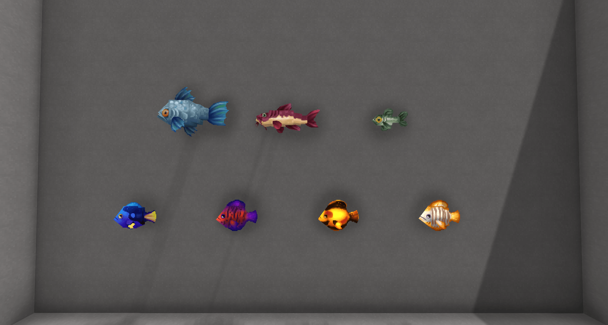 Рыбу можно разместить, удерживая их и щелкая правой кнопкой мыши, как и любой другой блок! Он создает декоративную реплику, которая выглядит и движется как рыба.
