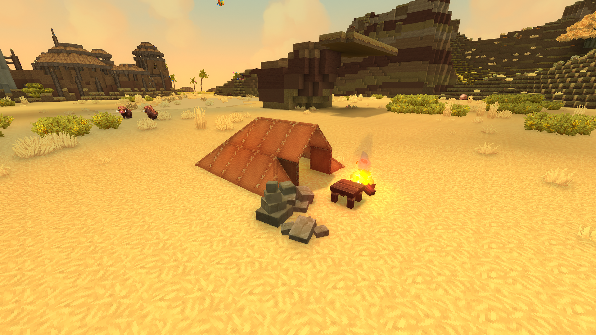 Это пустынный лагерь с палаткой и камином, готовый к использованию в любых проектах.