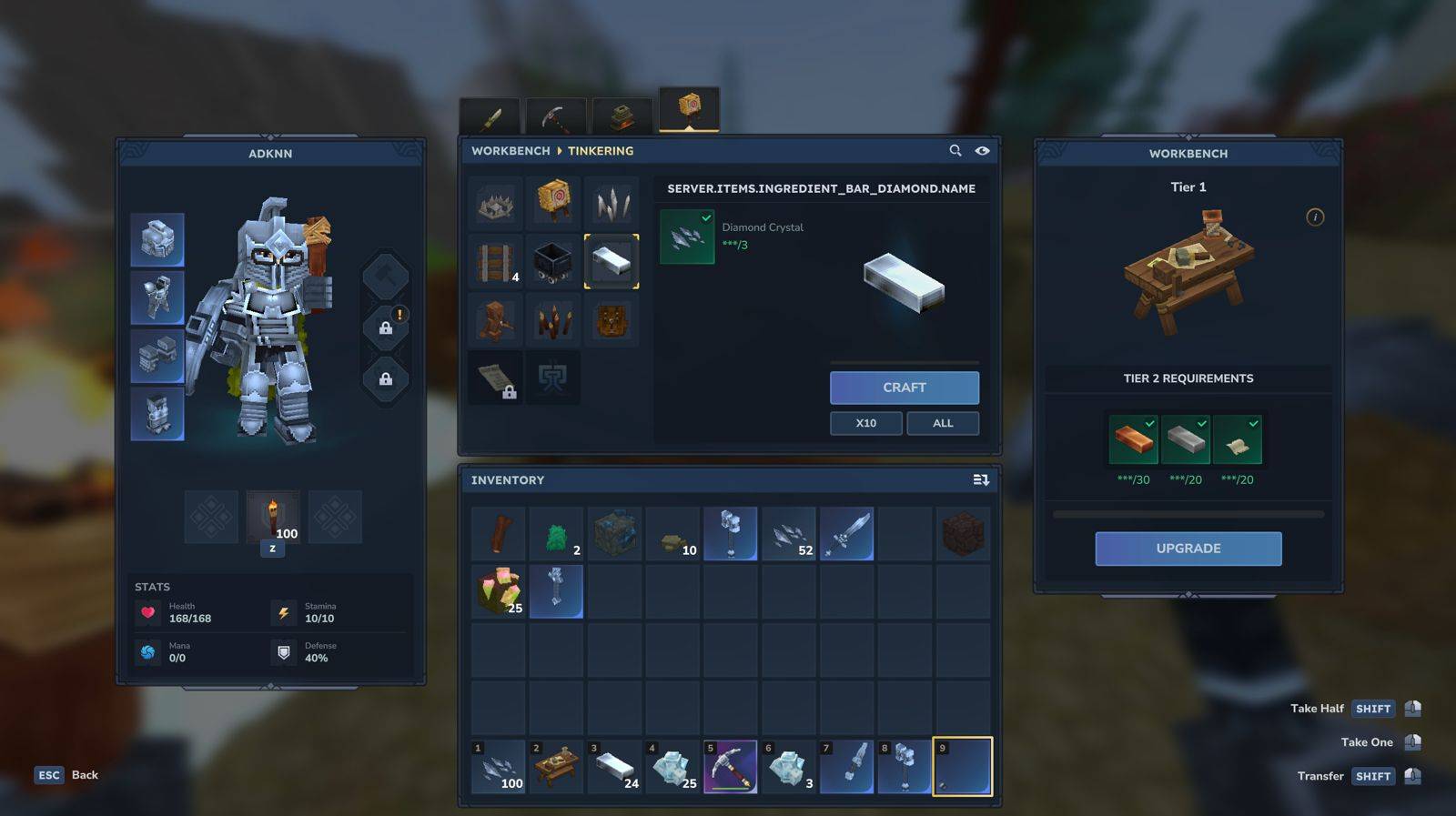 - Forging: Combine shards at a workbench to create Diamond Ingots.