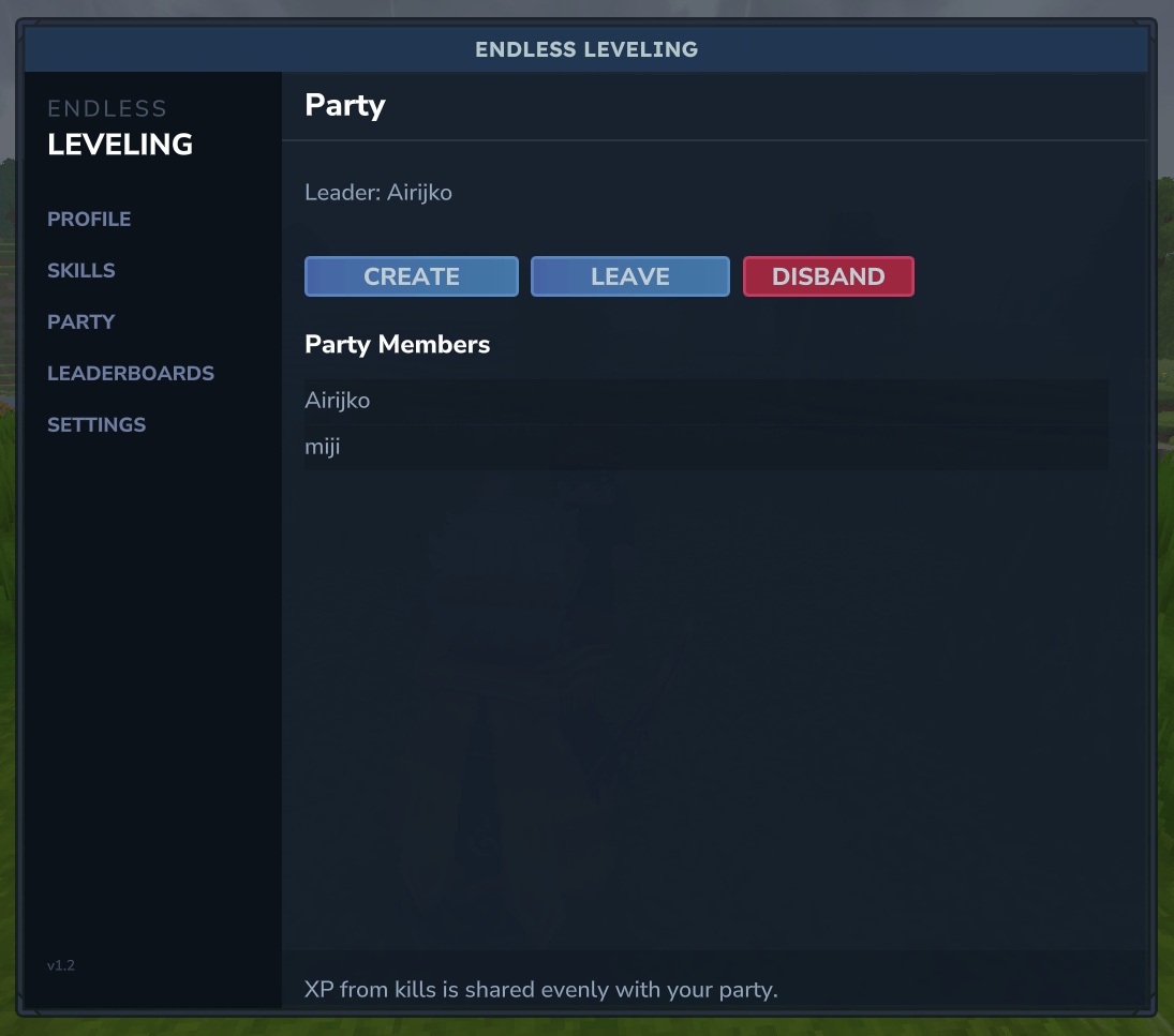 Note: The party system is a work in progress. Parties do not persist after leaving the world.