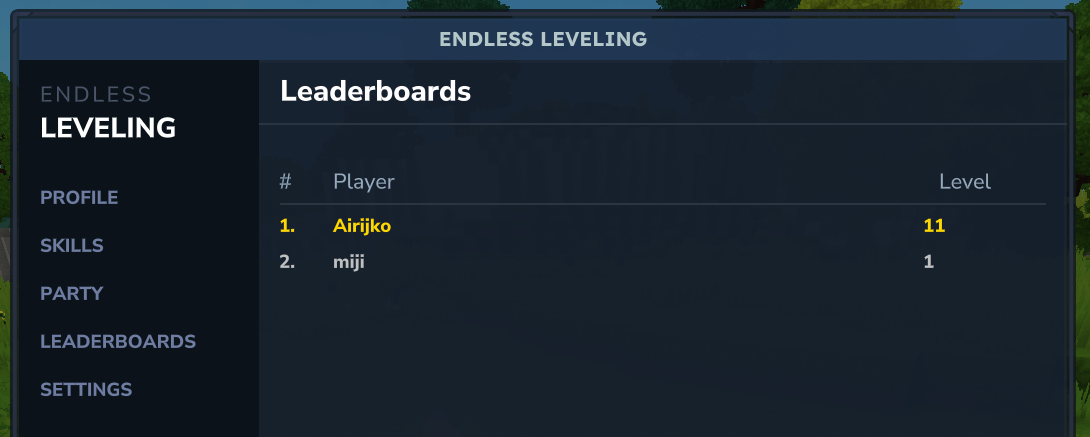 Opens the Leaderboards GUI, displaying ranked player progression and stats.