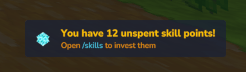 Opens the main Skills GUI. From here, players can view their stats and allocate available skill points.