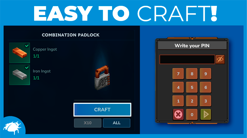 - Combination Padlock item to protect your chests and storage with a PIN code.