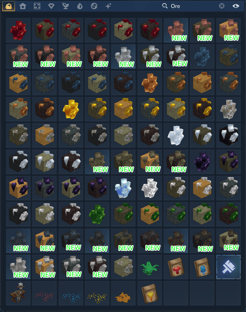 Optional fantasy ores (✨) – available if requested by the community