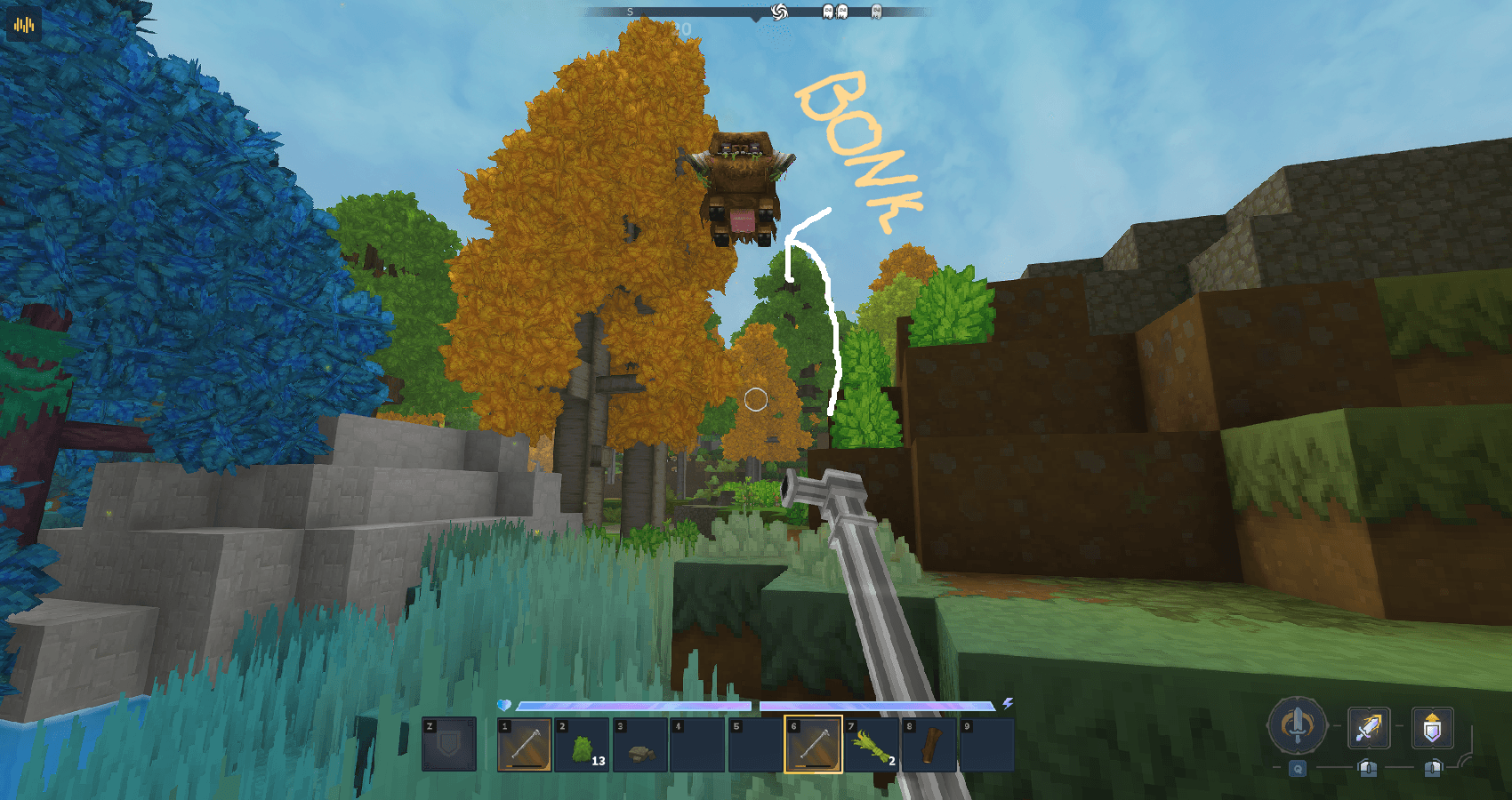 - Left-click attack bonks the opponent into the sky